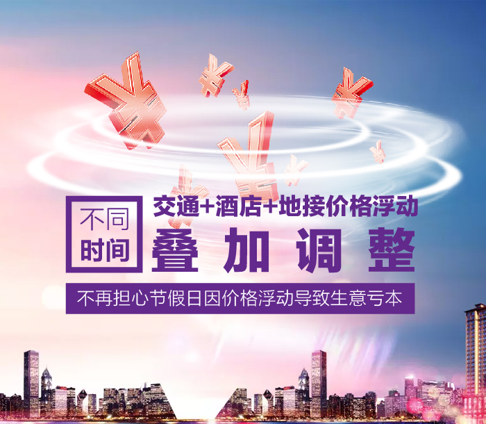 價格更新軟件再添雙翼,浮動價格多個時間段可以疊加調(diào)整,滿足不同時間段,交通,酒店,地接價格的不同浮動需求,不再擔(dān)心節(jié)假日因價格浮動導(dǎo)致生意虧本了,特別的功能給特別的您!。